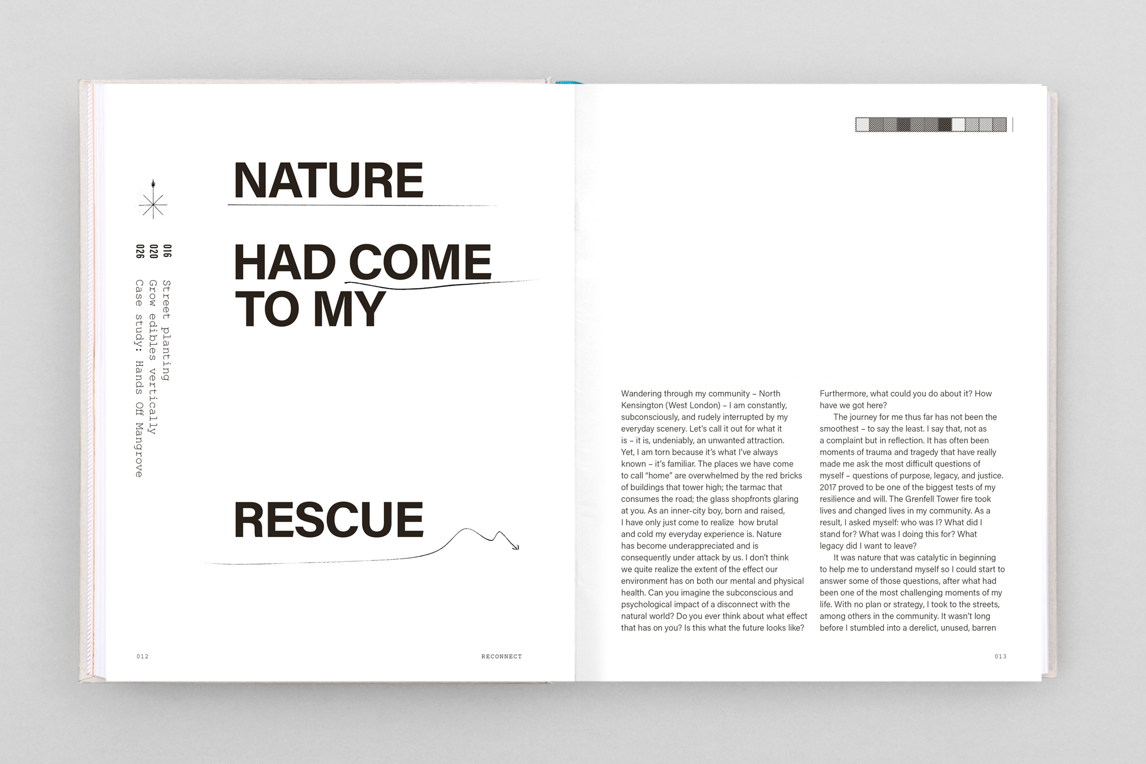 Small Space Revolution, written Tayshan Hayden-Smith (activist, gardener, tv personality) and published by Dorling Kindersley, is an illustrated gardening and lifestyle book that demonstrates practical projects to radically change small outdoor spaces. The design brief was to create a contemporary, clean typographic approach that blends layered, hand drawn elements, with zine-like aesthetics. I was commissioned to develop the BLAD, cover direction, information graphics and design the 192 page coffee table book. Thanks to the DK team: Maxine Pedliham, Tania Gomes, Joanna Chisholm and Lucy Philpott.